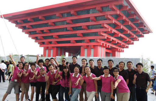 中國館前合影9月18日,秋高氣爽,公司組織員工參加上海世博園兩日游。上...