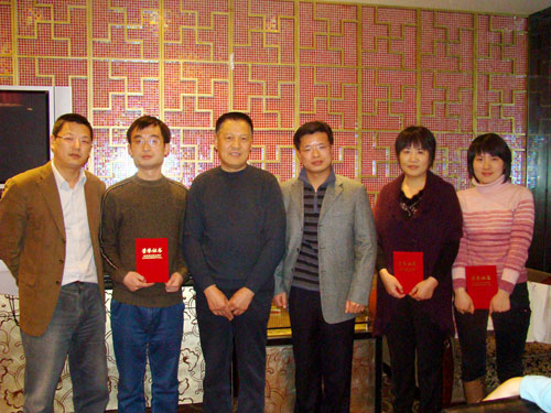 陳總在致辭中他回顧總結了浙商創投管理公司08年工作,同時提出09年公司奮斗目標,勉勵大家再接再勵,牛年更上一層樓。會上,公司領導為獲評2008年度優秀員工的謝力、韓新明、王軍華頒獎,并合影留念。