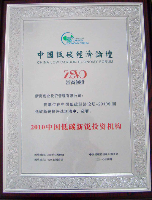 在4月10日開幕的中國低碳經濟論壇上,浙商創投榮膺“2010中國低碳新銳投資機構”,是此次論壇上獲此殊榮的唯一一家風險投資機構。浙商創投股份公司總裁、管理公司董事長陳越孟先生代表浙商創投參加論壇交流,并出席頒獎儀式。