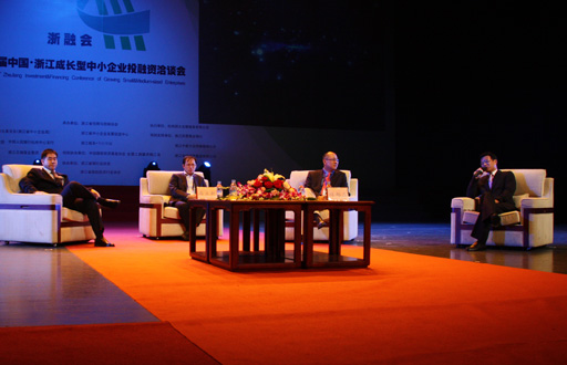 10月9日上午,2010首屆中國·浙江成長型中小企業投融資洽談會在浙江省人民大會堂開幕。浙商創投管理公司董事長陳越孟先生參加開幕式,并與清科集團董事長倪正東先生、香港大唐金融集團執行董事李惟琤先生、中信產業投資基金總經理吳海先生等一同出席圓桌會議,與與會代表就創投基金如何幫助對被投企業成長、浙商創投投資理念等展開交流討論。