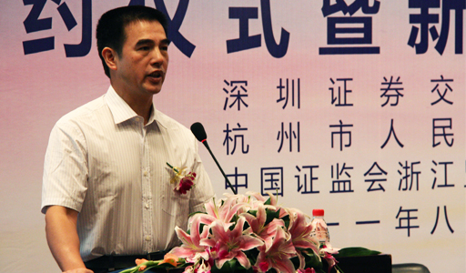 楊戌標在簽約儀式上致辭說,這是杭州市人民政府、深圳證券交易所、中國證監會浙江監管局三方長期友好合作的又一成果,是深入貫徹落實科學發展觀,探索科技與金融、企業與資本結合的有益嘗試,是加快推進杭州經濟發展方式轉變、推進產業轉型升級和區域金融中心建設的重要舉措。楊戌標指出,在杭州推進科學發展、推進轉型升級和創業創新的歷史進程中,離不開資本市場的強有力支持。企業上市(杭州)培育基地的組建和運行,將為我市乃至浙江、長三角企業上市發展,提供更為高效、便捷、權威的服務平臺;將為吸引企業、資本、技術、人才在杭對接和集聚,提供更為豐富的信息平臺;將為民營企業、中小企業、科技企業的創業創新,提供最為直接的發展平臺。杭州市各級各部門要充分認識培育基地的重要性,積極落實備忘錄的各項條款,為基地的運作創造良好條件,積極提供各項支持和保障。也希望深圳證券交易所、浙江監管局在今后的工作中,更多地關注杭州,為杭州企業上市、為企業發展壯大出謀劃策,推進各方共贏。