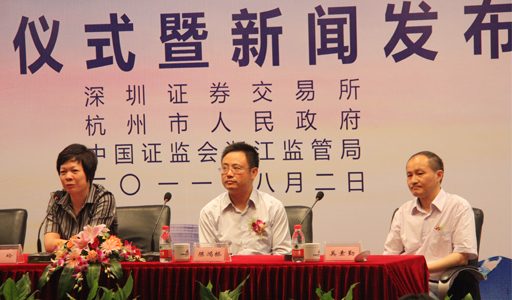 在簽約儀式結束后,深交所副總經理陳鴻橋、杭州金融辦主任奚素勤、杭州高新區副書記李玲參與了新聞發布會,他們熱情的回答了媒體提出的問題,并表示對創業創新企業上市培育基地的建設充滿信心。