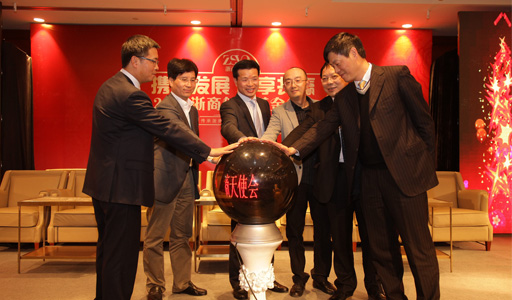 “浙商天使會(huì)”創(chuàng)始會(huì)員毛岱(右三)、工商銀行浙江省分行副行長葉定金(左二)和陳越孟、徐漢杰一起