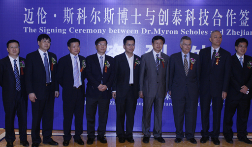 陳越孟在發言中說:“浙商創投作為浙江的民營資本代表,有機會同國際資本共同投資于海歸創業企業創泰科技,對我們來說,是一個榮幸更是一個契機。創泰科技的業務和產品具有獨特的概念,較高的技術壁壘和遠大的行業前景,還擁有富有創造力的創業團隊。而公司坐落的海創園,從2010年7月掛牌開始,就以引進海外高層次人才為前提,尤其重視"帶項目、帶技術、帶資金"的創業創新人才及團隊的引進。創泰科技正是海創園里最具代表性的企業之一,而浙商創投投資創泰科技也符合海創園鼓勵民營資本與海外人才合作創業的宗旨。21世紀的希望在中國,斯科爾斯博士能同浙江的民營資本,海歸企業精誠合作,使我們對創泰科技的美好未來有了更多期待。我們更希望這是美好的第一次,浙商創投愿意并且期待與斯科爾斯博士進一步合作,在浙江在杭州投資更多科技型企業。”