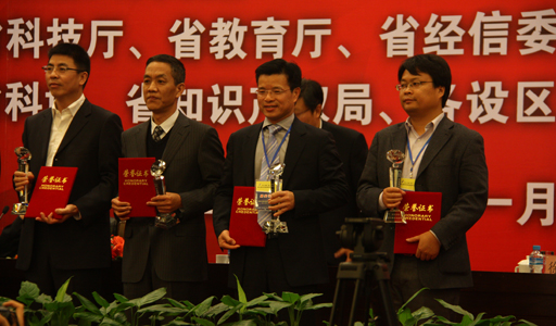 浙商創(chuàng)投董事長(zhǎng)陳越孟(右2)代表公司領(lǐng)取2012年度浙江省最具競(jìng)爭(zhēng)力創(chuàng)投機(jī)構(gòu)獎(jiǎng)