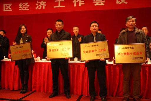 會議表彰了2013年度西湖區“突出貢獻十佳”、“高速成長十佳”等一批優秀企業和區財政局等一批經濟工作先進單位和個人,并舉行了頒獎儀式。浙商創投和綠城房產、宋城股份、青春寶集團、農夫山泉等重點企業榮獲“突出貢獻十佳企業”,并獲評“綜合實力百強企業”。華曄宇代表公司上臺領獎。