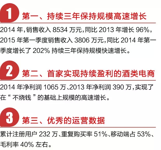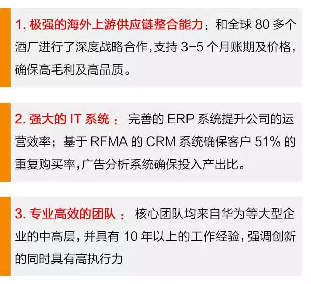 品尚匯自成立以來(lái),因發(fā)展迅速,前景看好,備受資本圈青睞,五家著名投資機(jī)構(gòu):浙商創(chuàng)投、同創(chuàng)偉業(yè)、信中利、啟賦資本、華歐創(chuàng)投歷經(jīng)多輪風(fēng)險(xiǎn)投資。公司秉承規(guī)??焖贁U(kuò)張的同時(shí)財(cái)務(wù)經(jīng)營(yíng)穩(wěn)健的風(fēng)格,取得了很好的運(yùn)營(yíng)數(shù)據(jù):