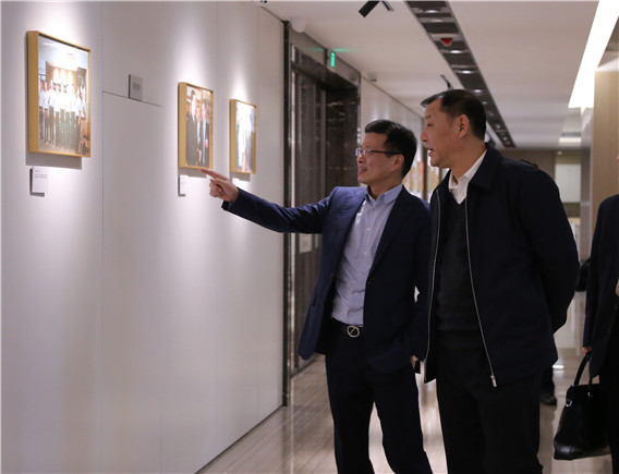▲圖:座談開(kāi)始前,陳越孟(左)陪同陳鐵雄(右)參觀浙商創(chuàng)投