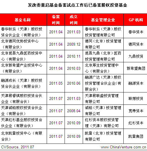 表1發改委重啟基金備案試點工作后已備案股權投資基金