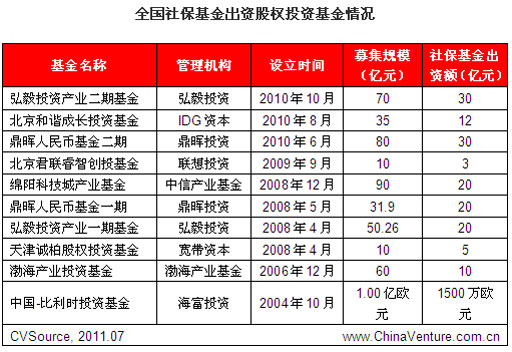 其中,除寬帶資本人民幣基金外,有6支基金為發改委《通知》出臺前備案基金,2支為發改委試點產業基金,僅有鼎暉第二期人民幣基金未出現在發改委已備案基金列表中。而在2011年3月份《通知》出臺前完成備案的6支基金中,除華人文化產業基金外,均已獲得全國社?;鹜顿Y。因此,今年3月份以來紅杉資本、德同資本、凱雷集團、春華資本等機構所備案基金,均有可能獲得社?;鸬淖①Y。