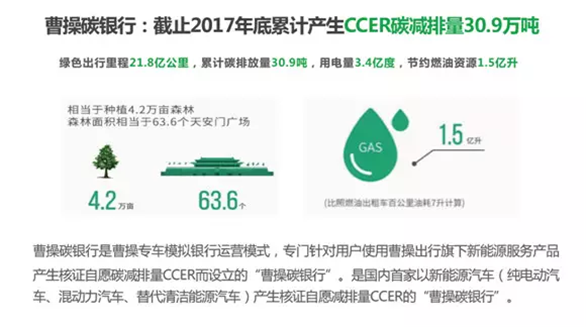 截至2017年底,這些車輛累計行駛里程接近22億公里,相當于繞地球5.4萬圈。累計產生CCER碳減排量30.9萬噸,相當于種植4.2萬畝森林,或63.6個天安門廣場。累計充電量3.4億度,節約燃油資源1.5億升(比照燃油出租車百公里油耗7升計算)。