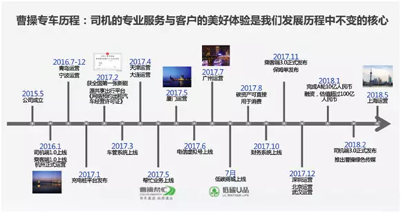 從2017年2月22日獲得浙江省交通運輸廳下發的《申請從事網約車經營具備線上服務能力的認定結果》成為國內首個獲得網約車牌照的新能源汽車共享出行服務平臺(服務區域為全國)后,截至2018年7月15日曹操專車已經獲得43個城市的網約車許可證。