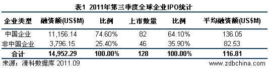 2011年第三季度,在清科研究中心關注的境外13個市場和境內3個市場上,共有128家企業上市,其中中國企業共有82家在境內外市場上市,占各國IPO總數的64.1%。中國企業上市融資總額達111.56億... 查看詳情→